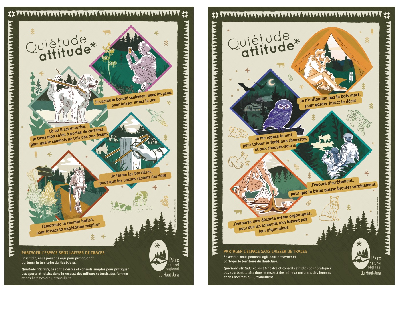 Conception, illustration et réalisation de la campagne 2025-2026 des gestes « Quiétude attitude ». Réalisation à quatre mains avec Sonia Bessueille